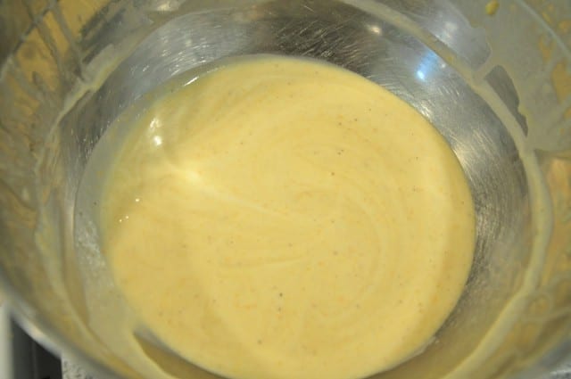 Step 7: In a bowl, whisk together two egg yolks and 1/2 cup of heavy cream. As you continue whisking, add the hot cooking liquid to the bowl by spoonfuls until you have added about a cup. Then add the rest of the liquid in a thin stream (or by ladlefuls) and mix as you go. Pour the liquid—now a sauce—back into the pan and bring it to a boil for about a minute, adding the cooking juices from the onions and mushrooms. Pass the sauce through a fine sieve, to eliminate the vegetables and sundry small particles, back into the bowl. (By the way, don’t throw out the vegetables left in the sieve; it’s the cook’s privilege the eat the vegetables, which are absolutely delicious!) Grate in a bit of nutmeg. (Here Julia calls for a few drops of lemon juice—presumably to mimic the taste of crème fraîche—but I found that the wine had already given the dish enough acidity, so I omitted it. And since I did not seem to have quite enough sauce, I thinned it a bit with more cream.)