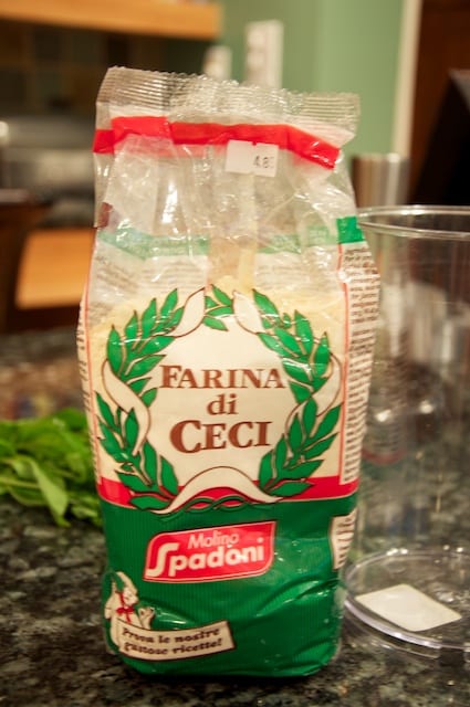 The only ‘tricky’ part of making chickpea flatbread is finding the main ingredient. Chickpea flour is not that easy to find in your average supermarket, but you can find it at Whole Foods, as well as better Italian delis. And you can always order in online.
