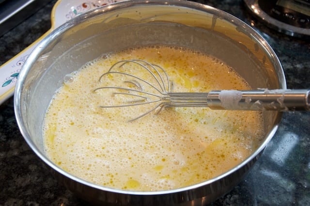 The initial rest may seem like an unnecessary drag, but it really is quite important. The rest gives the chickpea flatbread a smoother texture and richer flavor. Recipes are all over the place on how long to let it rest, some calling for as little as 3 hours, others up to 18 hours. You can even let it rest longer than that: when I last made this dish, I made more batter than I needed, so I refrigerated the rest. I didn’t get around to making a second batch until a full week later—and the second farinata was even more delicious than the first.