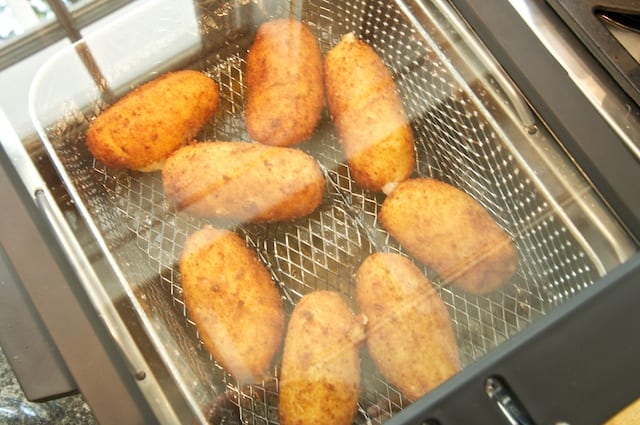 - Deep fry the croquettes in abundant oil, heated to 180C/350F, until they are nice and golden brown to your liking. This should take about 5 minutes.
