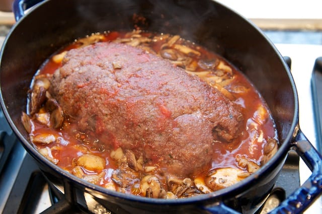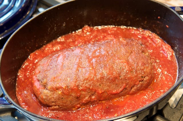 Cover the pot and let the meatloaf braise for a good 30 minutes.