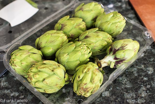 Frank – You did a great job trimming those artichokes. I know how much work that is and they look delicious. I once tried making that carciofi alla giudia and it just didn’t work with the kind of artichokes available here. I guess I need to get to Rome – soon!