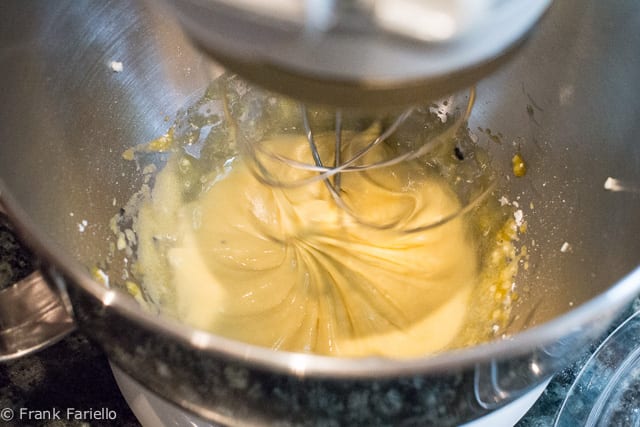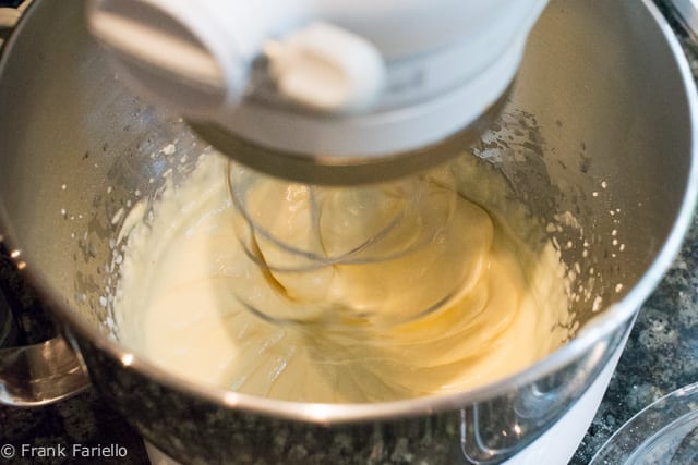 - In the bowl of a standing mixer, whisk the egg yolks and sugar together until they are completely smooth and the mixture forms ribbons, like so:
